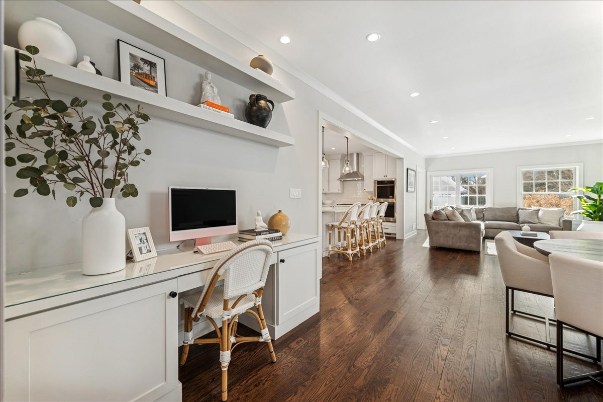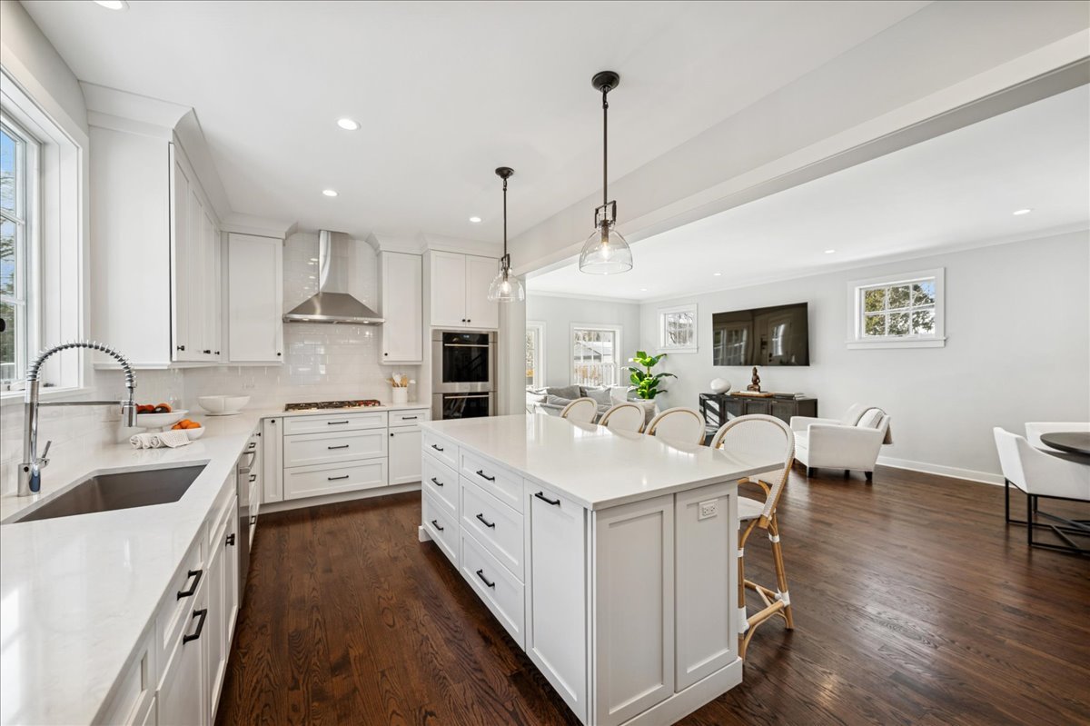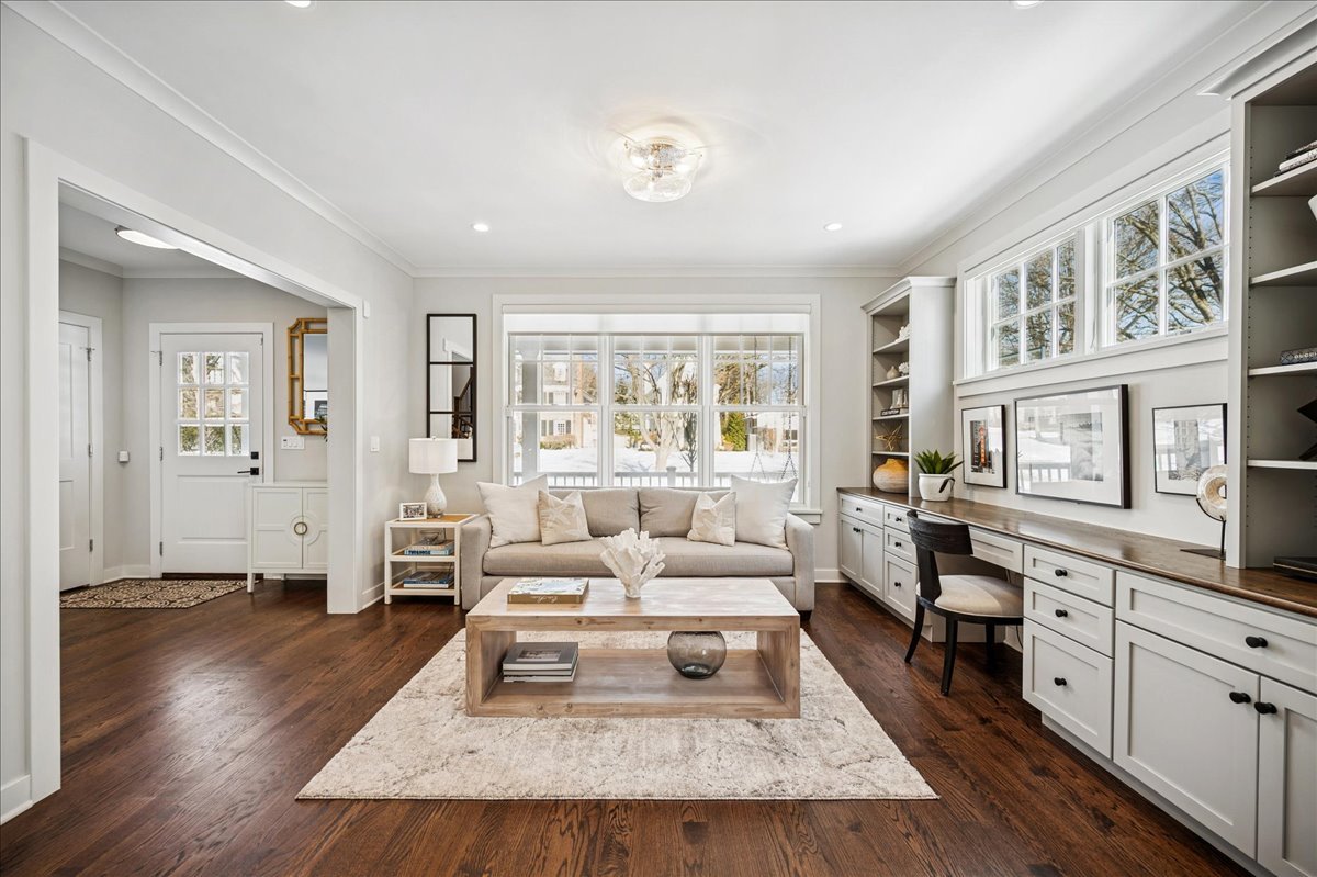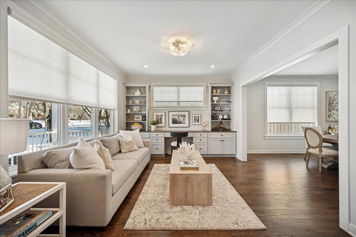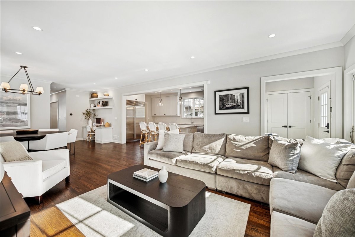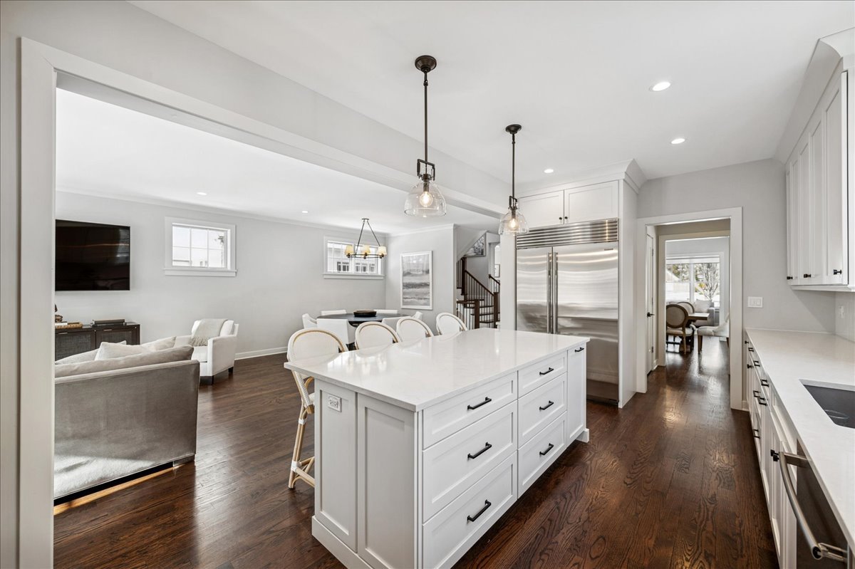 Newer construction, larger than it appears! This 2019 custom-built home offers 5 bedrooms and 4.1 baths in a prime in-town Glencoe location. A charming front porch immediately invites you into a warm, thoughtfully designed home filled with timeless details and high-end finishes throughout. Designed for effortless entertaining, the open floor plan is flooded with natural light, with soaring ceilings and a south-facing backyard enhancing the light. The spacious living room features a built-in desk, while the elegant dining room is complemented by an adjoining butler's pantry. At the heart of the home is a stunning white chef's kitchen, outfitted with Sub-Zero and Wolf appliances, quartz countertops, an oversized eat-in island, walk-in pantry, and a sunny breakfast nook with custom cabinetry. The kitchen flows seamlessly into the family room, where sliding doors open to a Trex deck and a fully fenced backyard -perfect for both everyday living and entertaining. The gracious primary suite is a true retreat, featuring a dreamy walk-in closet and a spa-like bath with double vanity and steam shower. Two additional bedrooms share a Jack-and-Jill bath, while a generously sized fourth bedroom offers a private en-suite bath. A convenient second-floor laundry room completes this level. The finished basement provides an expansive recreation room, a fifth bedroom with full bath, and exceptional storage. Additional highlights include a wide driveway, oversized two-car garage, new wood fence, and a full sprinkler system. This home offers outstanding flexibility for multiple workspaces, play areas, and entertaining spaces. Enjoy all the benefits of newer construction without the start-up costs-custom closets, window treatments, and thoughtful upgrades are already in. Ideally located just steps from town, train, schools, parks, golf, and more, this is a beautiful home in the heart of Glencoe. Improvement list available.