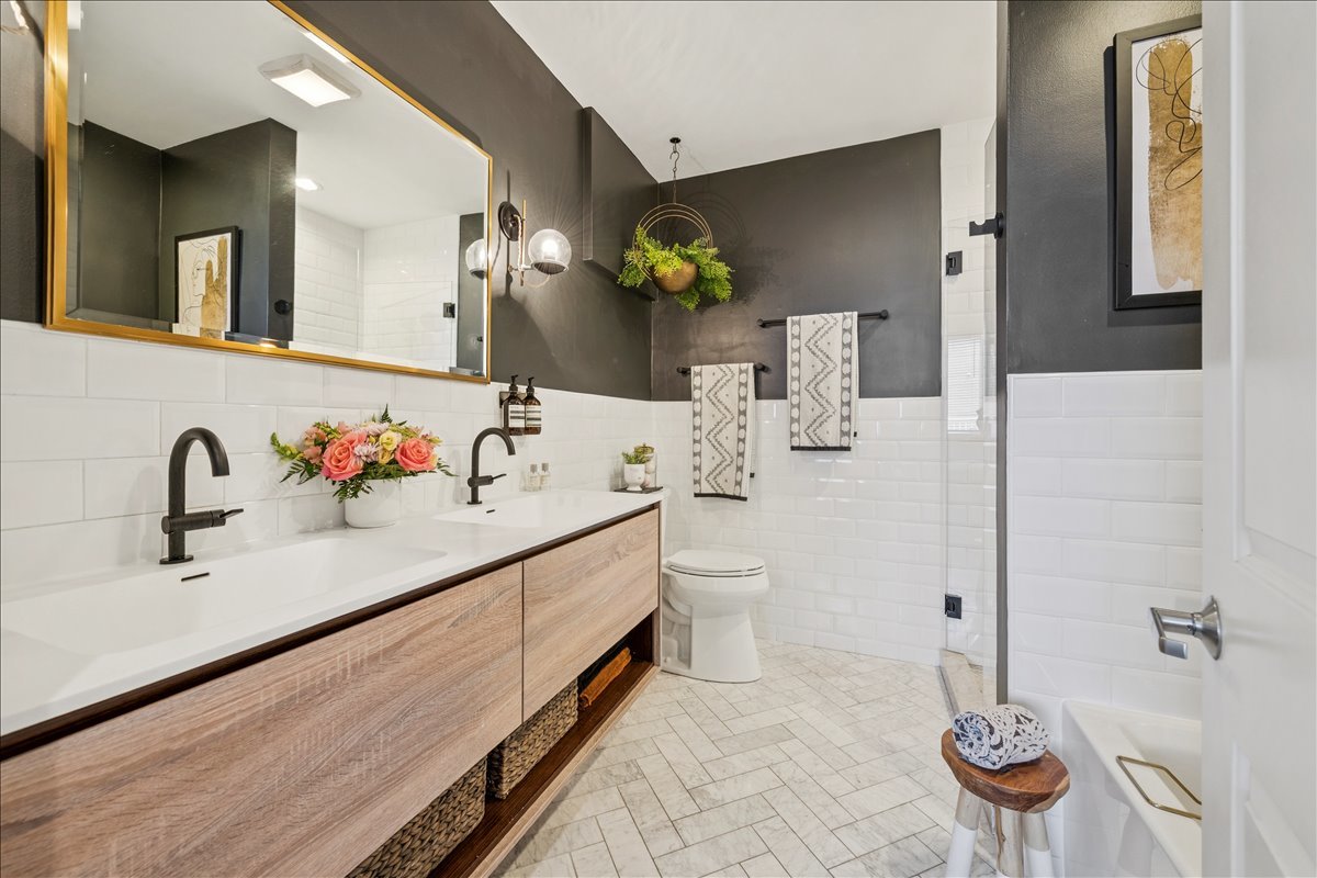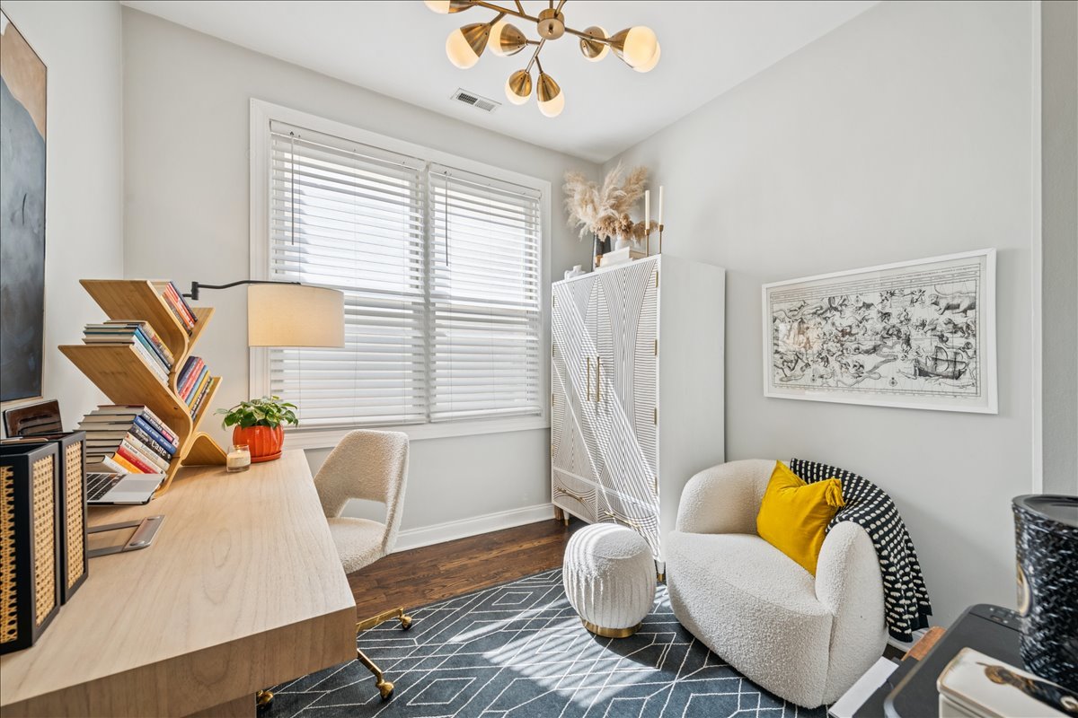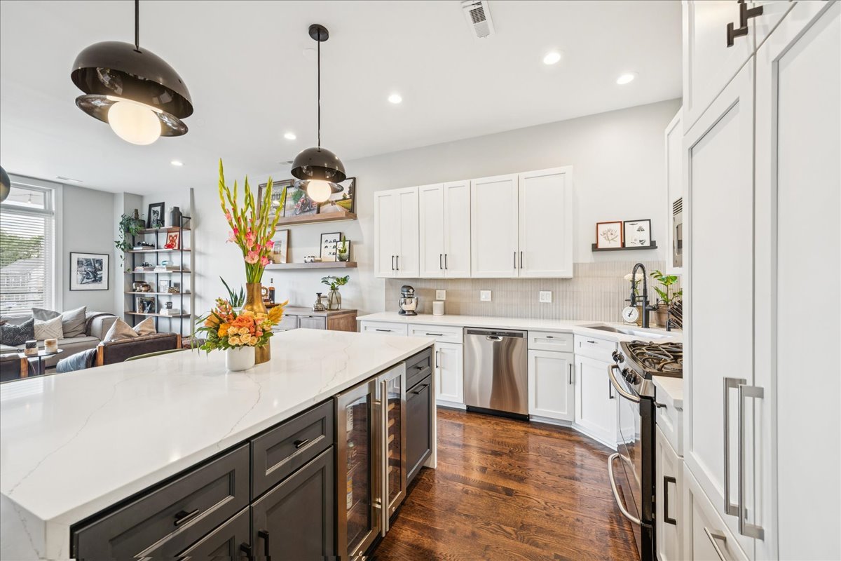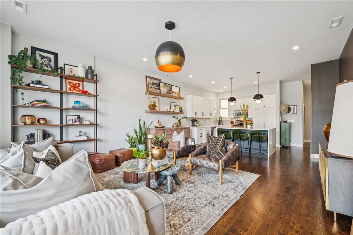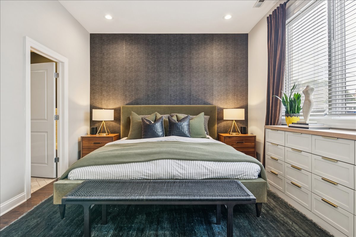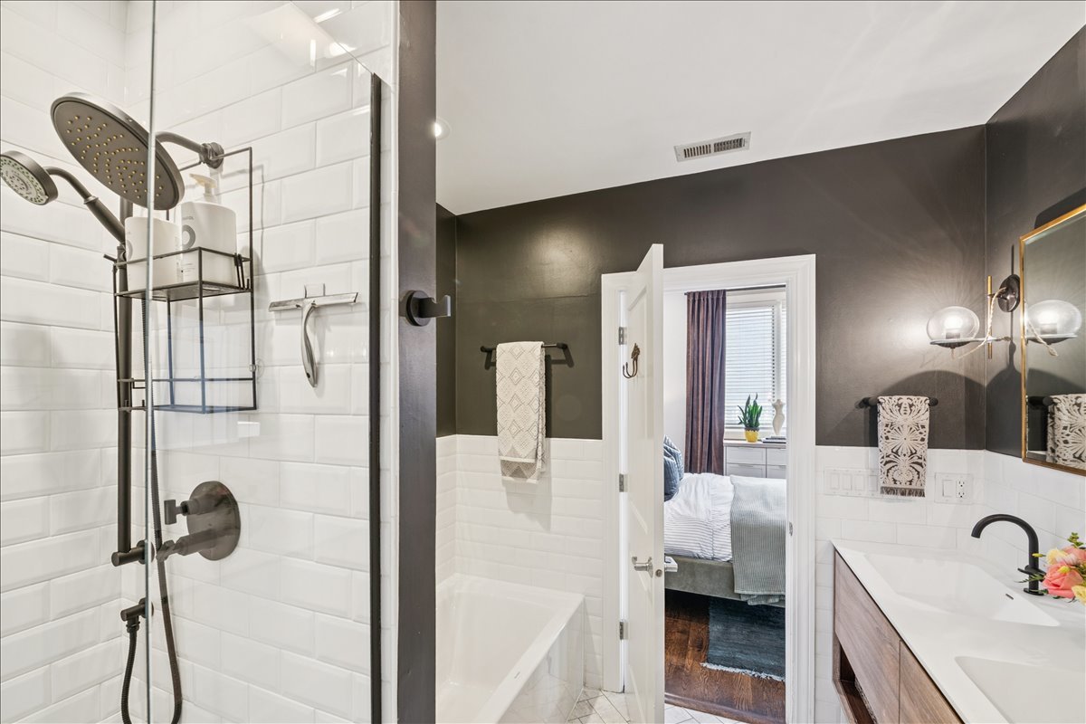 In the heart of Bucktown, this thoughtfully updated and meticulously maintained extra-wide two bedroom, two bathroom condo offers the perfect blend of style, comfort, and location. The home welcomes you with an expansive and light-filled layout, where oversized windows pour in sunlight and a rejuvenated gas fireplace creates a warm centerpiece for the living space. Just beyond, a private walk-out terrace runs the full width of the home, an ideal extension for grilling, entertaining, or simply enjoying the fresh air. The beautifully renovated kitchen is both functional and stunning, with crisp white cabinetry, quartz countertops, a massive island with seating, a new beverage fridge, and top-of-the-line appliances. Rather than a traditional dining area, the owners created a custom bar that makes entertaining effortless and gives the home a truly unique personality. The primary suite is a serene retreat, offering a newly built walk in closet with full wall custom storage and a spa like bathroom featuring dual sinks, quartz counters, a soaking tub, and a separate glass shower. The second bedroom provides flexibility as a second bedroom or home office, and is complemented by another fully renovated bathroom that mirrors the home's elevated design. A second private outdoor escape awaits on the expansive west facing deck at the rear of the home, where natural light lingers into the evening and the setting is perfect for unwinding or hosting friends. With two parking spaces one garage and one exterior and every modern update imaginable, including a refreshed fireplace, new custom refrigerator, washer and dryer, LED lighting, and fresh paint throughout, the home is completely turnkey. Best of all, the location could not be more ideal. Just steps from Bucktown and Wicker Park's renowned dining, shopping, nightlife, and the 606 Trail, with effortless access to 90/94, this condo captures the essence of city living in one of Chicago's most desirable neighborhoods.